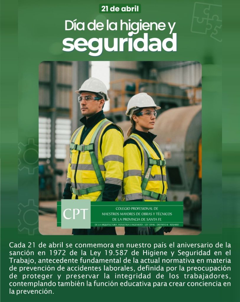 Cada 21 de abril se conmemora en nuestro país el aniversario de la sanción en 1972 de la Ley 19.587 de Higiene y Seguridad en el Trabajo, antecedente fundamental de la actual normativa en materia de prevención de accidentes laborales, definida por la preocupación de proteger y preservar la integridad de los trabajadores, contemplando también la función educativa para crear conciencia en la prevención.