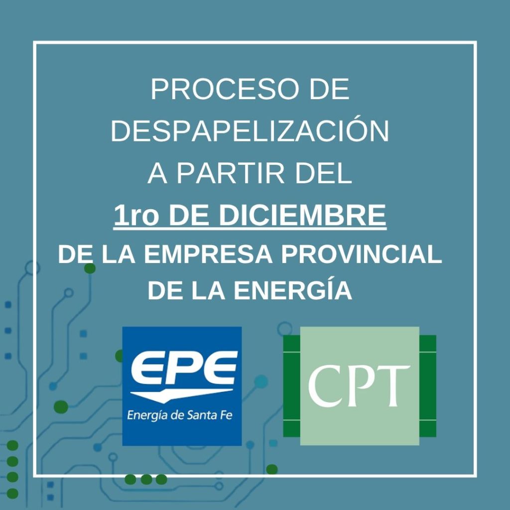 De acuerdo con la política interna implementada por EPE en el proceso de despapelización de documentación, se informa que a partir del 01 de diciembre de 2025, la totalidad de los exptes técnicos por inspección/inscripción de CyASP visados en el CPT (formato pdf), deberán enviarse por correo electrónico a la dirección de calderas_rosario@epe.santafe.gov.ar para su gestión.